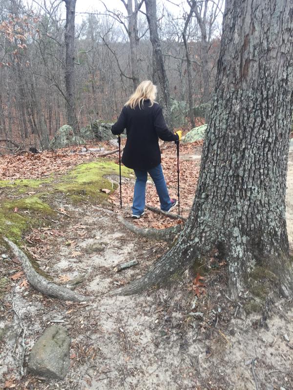 The extra support of a pole takes miles off your knees and hips.