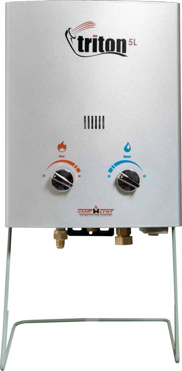 Take the comfort of hot water with you on your next rv adventure or camping trip or just have it available outside when you invest in the camp chef triton 5 liter portable water heater with shower head.